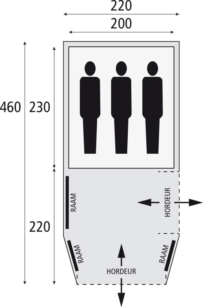 Naast het goed ademende tentdoek beschikt de Mustang 220 RSTC ook over ruim voldoende ventilatieopeningen. Er is ook een zijingang met horrengaas net als de ingang aan de voorzijde. Creatieve mensen zouden zelfs van de deur aan de voorzijde een kleine zonneluifel kunnen maken. Je hebt hiervoor alleen een tweetal stokken, scheerlijnen en haringen nodig.