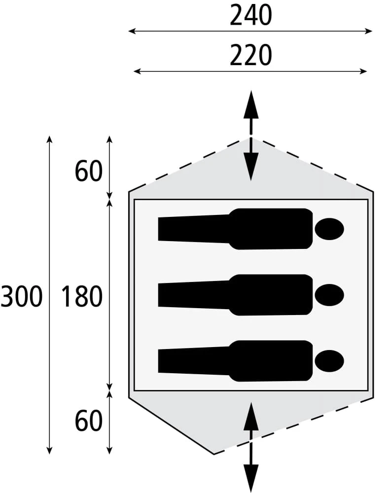 Een volledig ventilerende binnentent laat warme lucht beter uit de tent stromen terwijl er frisse lucht goed naar binnen kan. Ook heeft de Stratos 240 aan beide kanten horrengaasdeuren. Met 2 ingangen kan je beter de tent in- en uitstappen zonder dat je eerst over je reismaatje hoeft te kruipen. Afhankelijk van het soort bedden die je gebruikt, kan je met 2 of 3 personen in de tent overnachten.