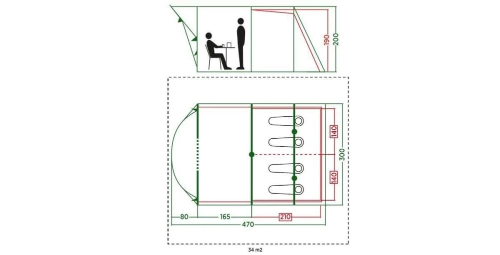 De tunneltent is voorzien van een drempelvrije ingang waardoor je makkelijk naar binnen en buiten kunt gaan. Deze kan ook omhoog worden geklapt. De binnentent bestaat uit een ademend polyester met horrengaas deuren die insecten tegenhoudt.