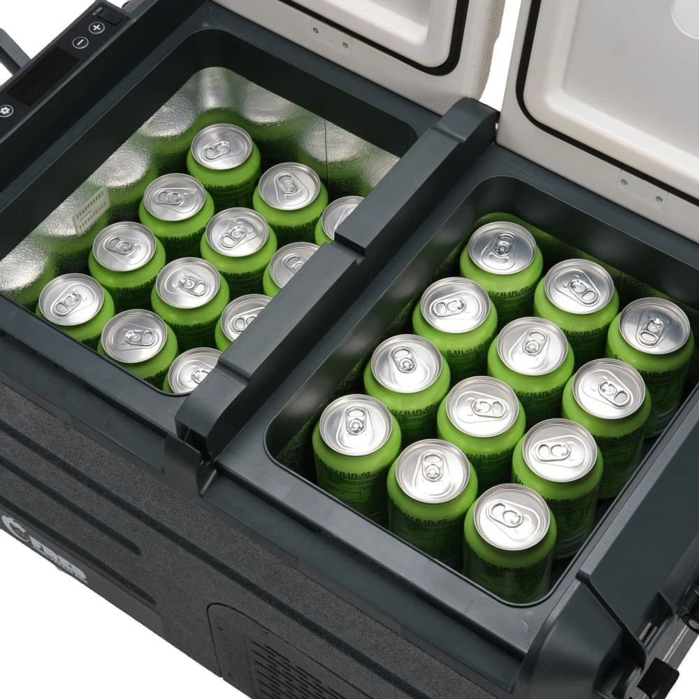 Het bijzondere aan de Fred koelboxen is dat ze niet alleen kunnen koelen, maar dat ze ook kunnen vriezen! Zo kan je zelf bepalen hoe koud je de temperatuur in de koelbox wilt hebben. Je kiest voor koelen wanneer je alleen je eten en drinken koel wilt houden. Heb je ijsjes meegenomen of andere diepvriesproducten dan kies je op het display voor vriezen. De Double Fred koelbox heeft twee compartimenten. Het is mogelijk om allebei te laten koelen of vriezen, of je laat de ene koelen en het andere compartiment vriezen. Zo simpel kan het zijn!Â