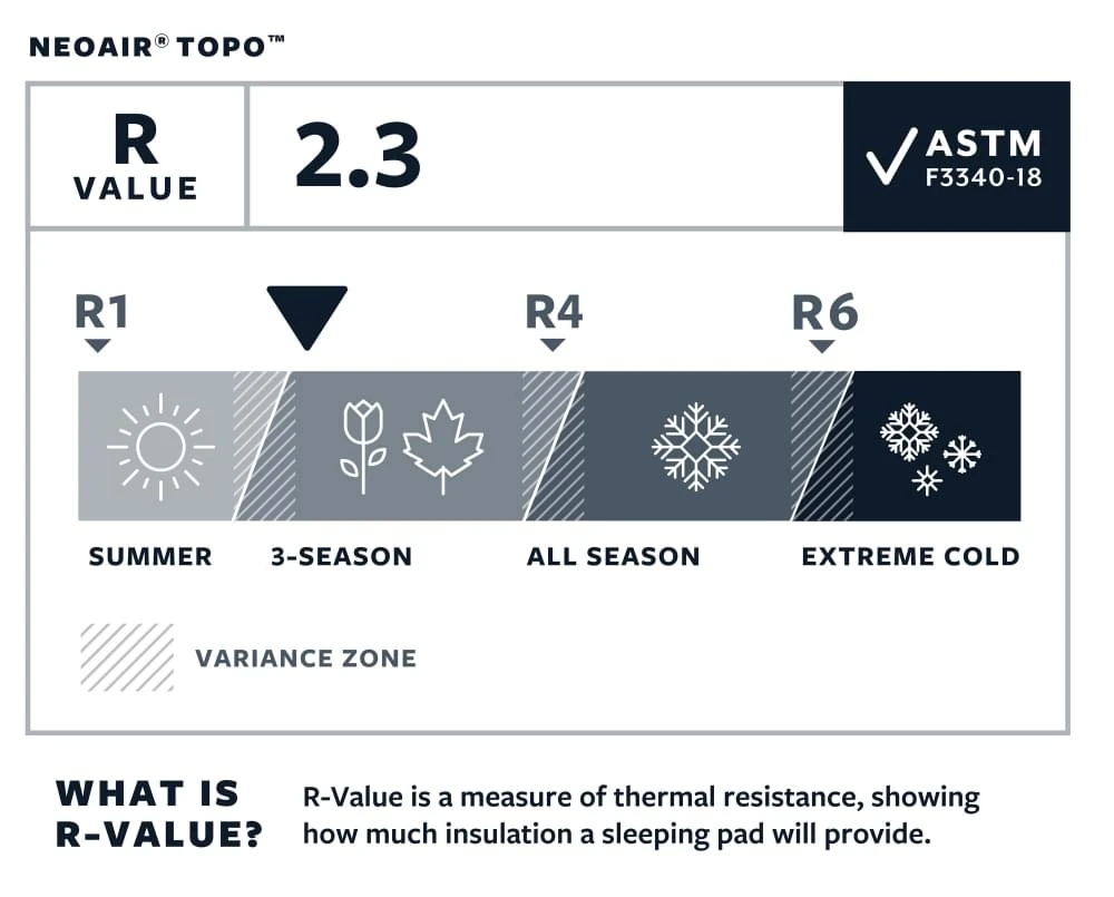 Ondanks een dikte van 7,6 cm is de NeoAir Topo RW ruim onder de kilo gebleven. Ook is het pakvolume nog steeds interessant voor mensen die met een rugzak of fietstas op reis gaan. Deze Therm-a-Rest mat is prima te gebruiken in het voorjaar en in de zomer. Extremere temperaturen vragen om andere slaapmatten.
